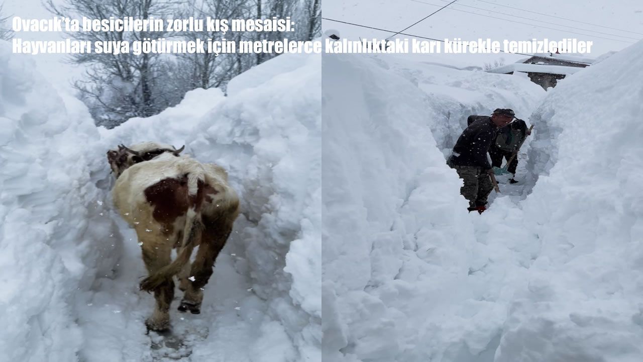HABER49- Ovacık'a bağlı Koyungölü köyünde etkili olan yoğun kar yağışı, yaşamı olumsuz etkiledi. İnsan boyunu aşan kar kalınlığı nedeniyle köyde günlük hayat adeta durma noktasına geldi. Özellikle hayvancılıkla geçimini sağlayan köy sakinleri, ahırlardaki büyükbaş hayvanların su ihtiyacını karşılamakta güçlük yaşadı. Kar nedeniyle su kaynaklarına ve çeşmelere giden yollar tamamen kapanırken, köylüler küreklerle saatler süren bir çalışma başlattı.
