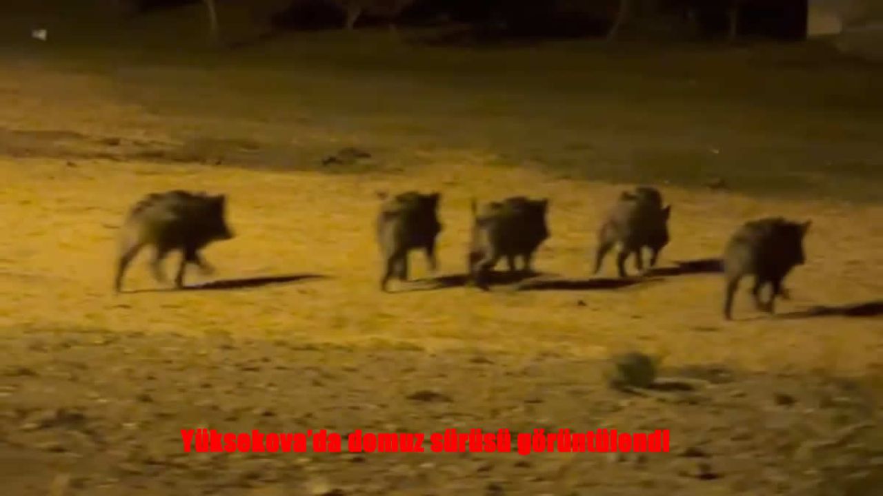 HABER49- Hakkari’nin Yüksekova ilçesine bağlı Duraklı köyünde akşam saatlerinde yaban domuzu sürüsü görüntülendi. İlçe merkezine ve köylere zaman zaman inen domuzlar, bu kez köy yolunda dolaşırken bir vatandaş tarafından cep telefonu kamerasıyla kaydedildi.