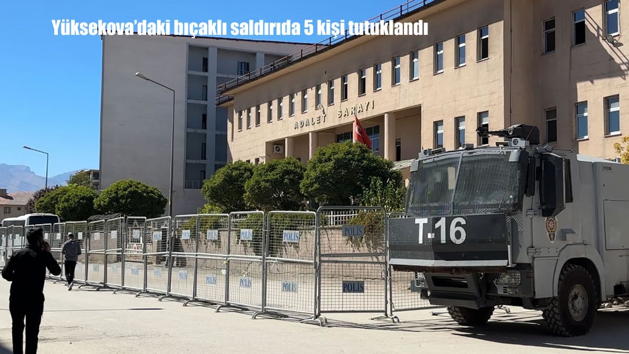 Yüksekova ilçesinde yaşanan bıçaklı saldırı olayıyla ilgili soruşturma devam ediyor. Soruşturma kapsamında gözaltına alınan T.T., R.G., U.Ş., T.T., R.T., M.T., S.T. ile M.Ş., emniyetteki işlemlerinin ardından Yüksekova Adliyesi'ne getirildi. Cumhuriyet savcılığında ifadeleri alınan 8 şüpheliden M.T., R.T., T.T., U.Ş. ve M.Ş. "iştirak halinde tasarlayarak kasten öldürmeye teşebbüs" suçundan tutuklanarak cezaevine gönderildi. Diğer şüpheliler serbest bırakılırken, olayla ilgili soruşturma çok yönlü olarak sürüyor.