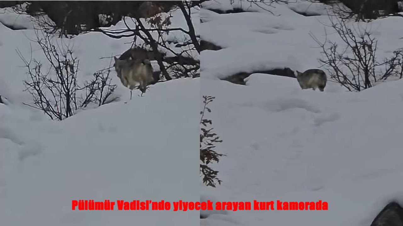 HABER49- Tunceli’nin Pülümür Vadisi’nde yiyecek arayan bir kurt cep telefonu kamerasına yansıdı.